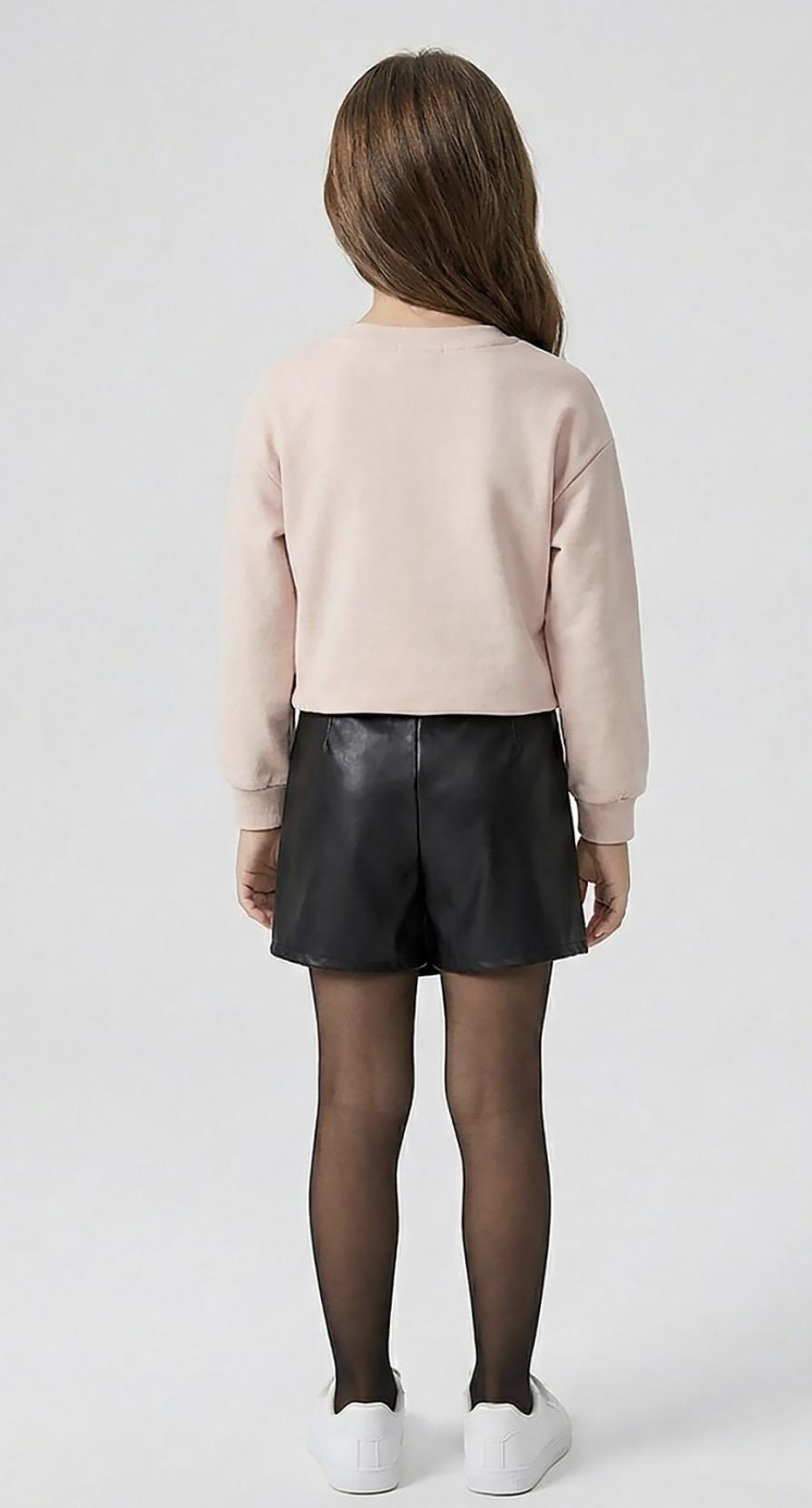 Altı deri şort etektir.Üst toz pembe sweet 3 iplik şardonsuz kumaştır.