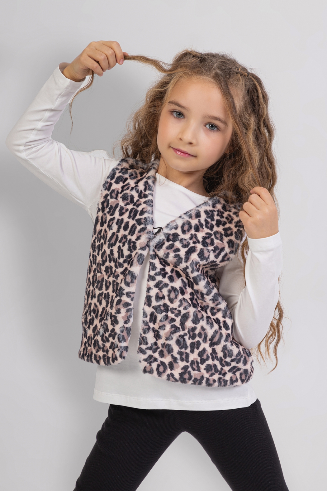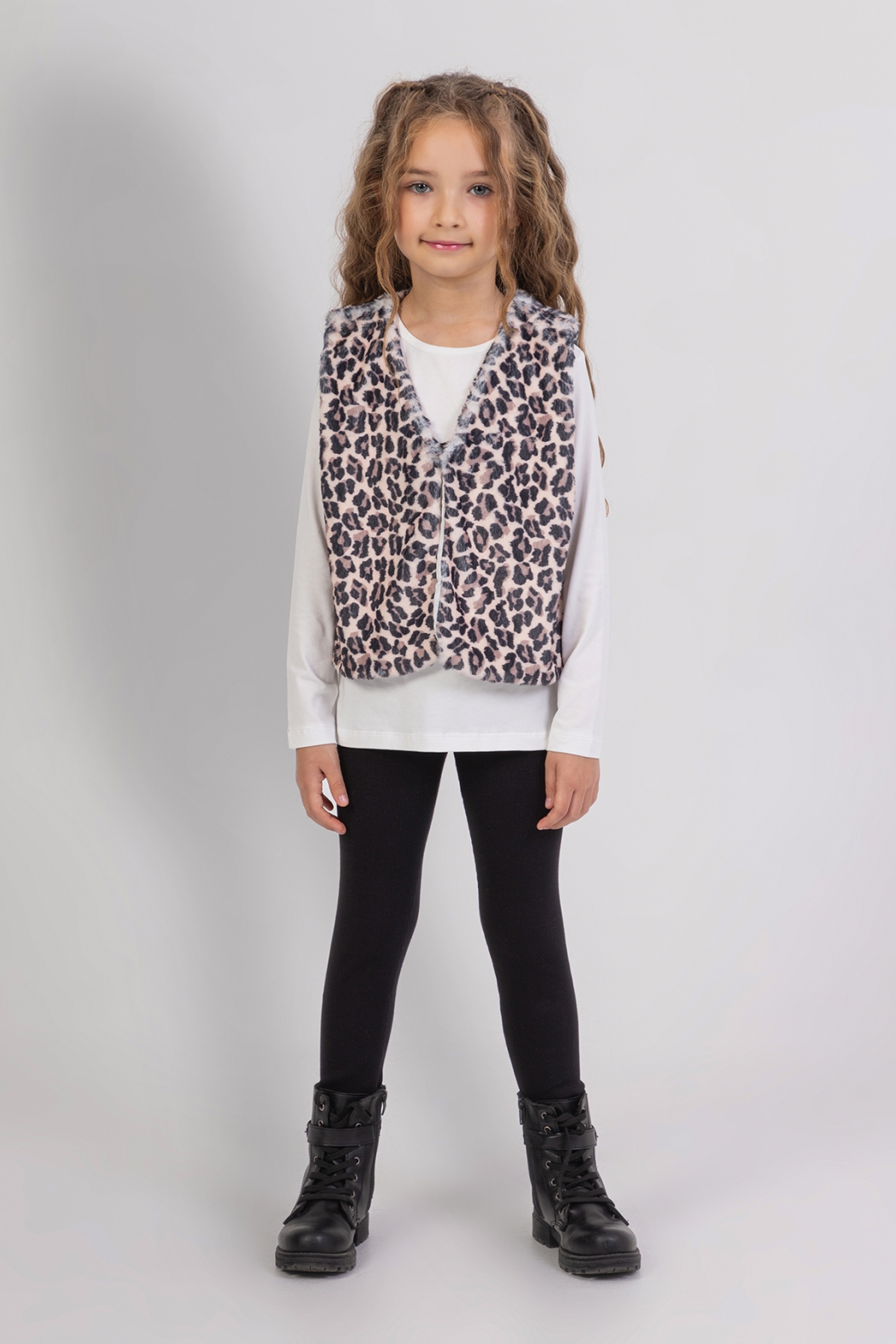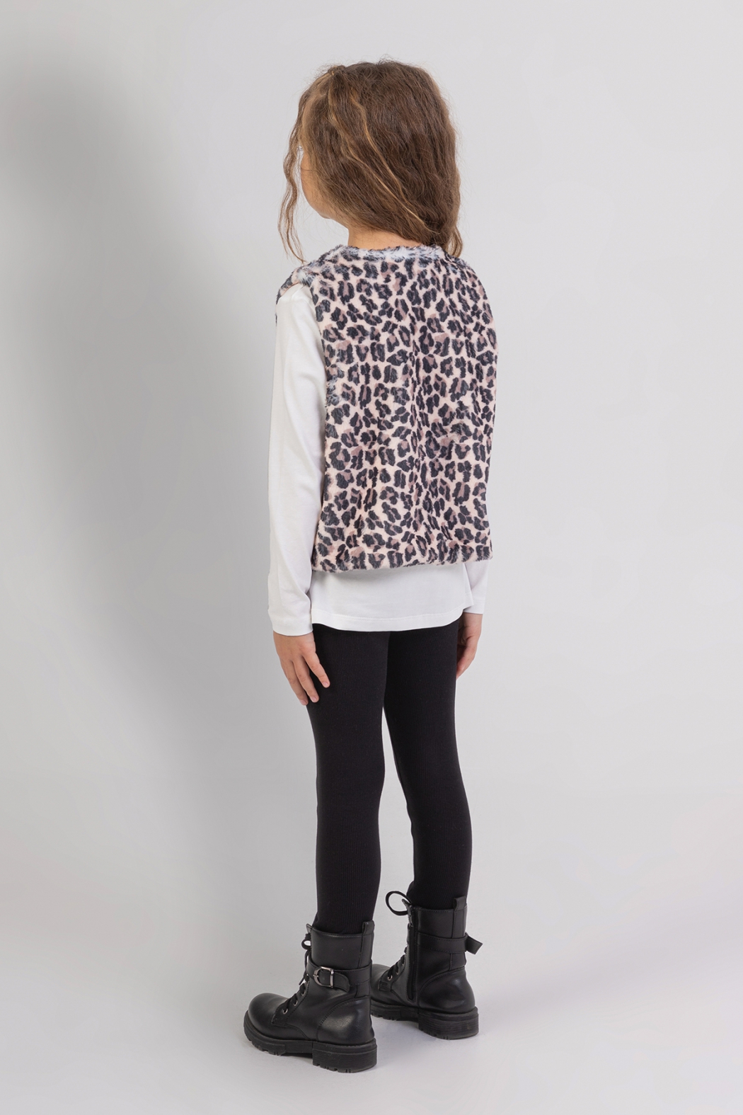 Yelek peluş leopar desenli bluz ve tayt %100 pamuklu kumaştır.