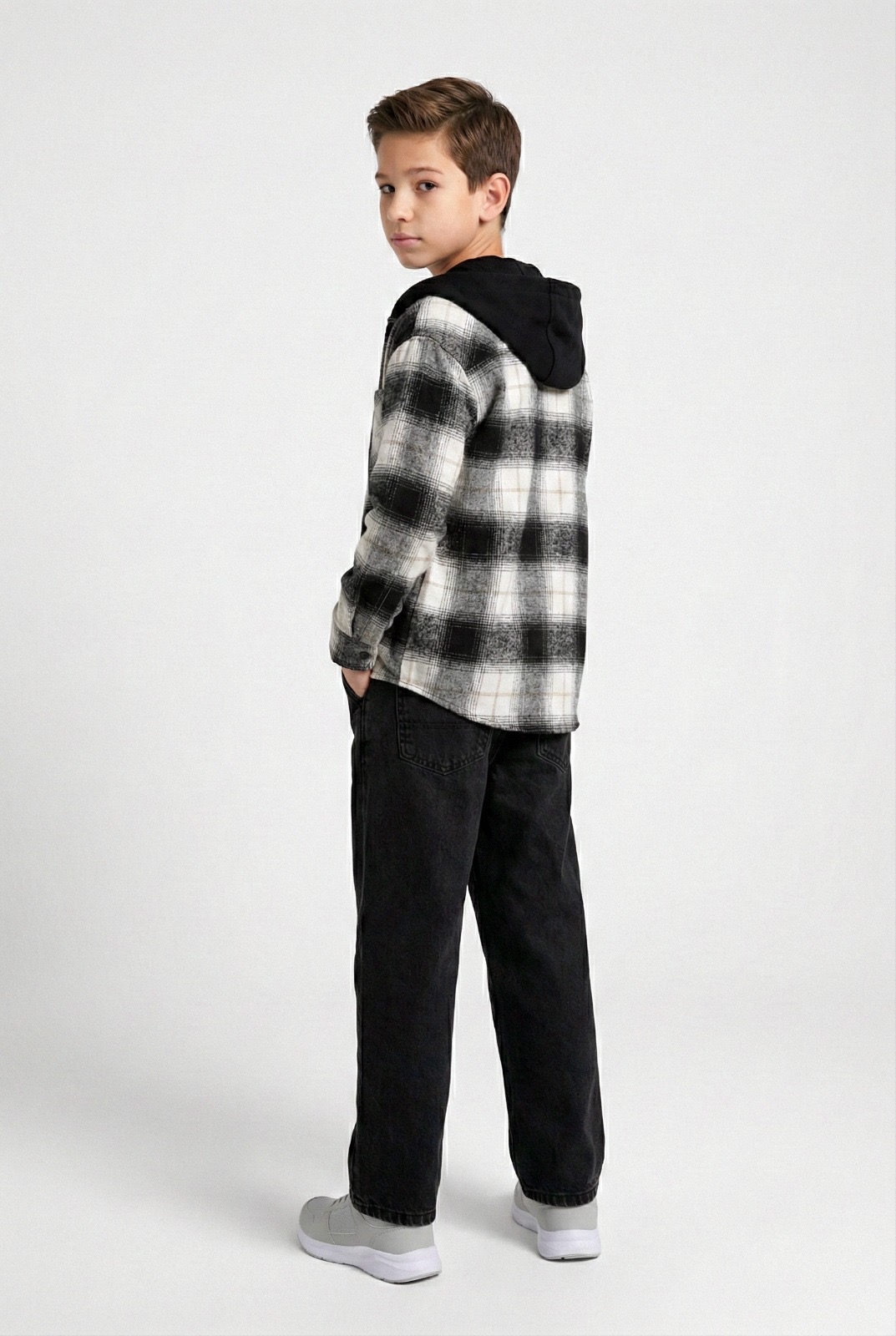 Oduncu gömlek kumaşı kapşonu çıkartılabilinir.